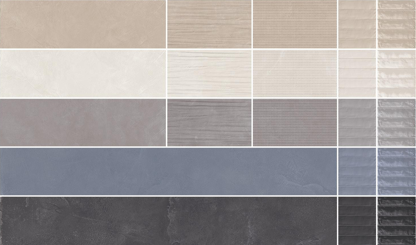 The association of different but totally matching materials generates a unique, contemporary series: three resins with different application potentials, a brick, and a wide range of decors.